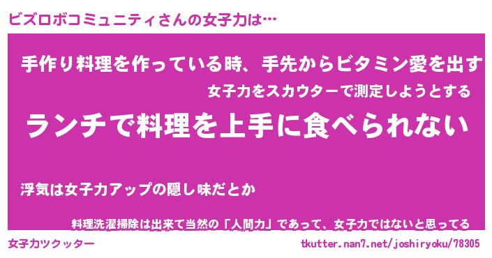 | 女子向けラノベタイトル風あだ名 | 『誰かこのビズロボコミュニティを説明してください! ~契約から始まるウェディング~』 |