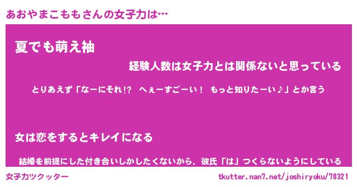 | 肩書あだ名 | 『あおやまこもも御曹司』 |
