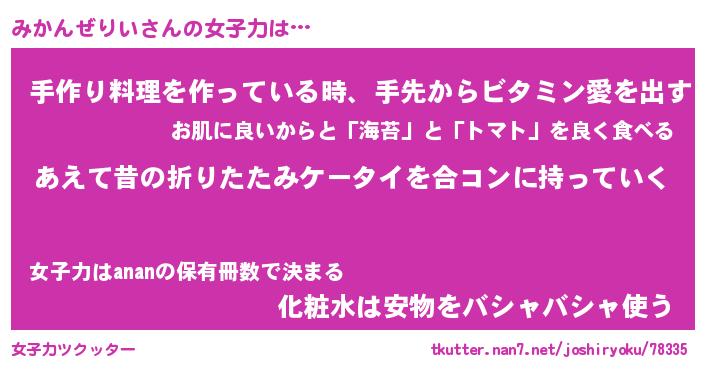 | 女子向けラノベタイトル風あだ名 | 『(仮)みかんぜりいのやんごとなき事情』 |