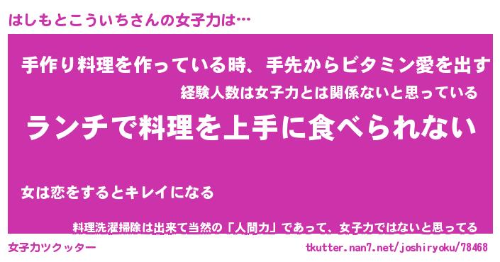 | ヘコむあだ名 | 『はしもー』『つくし』『はしお』 |