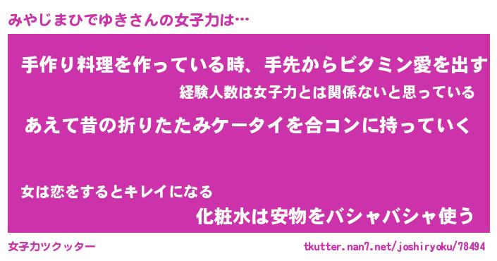 | ポケモン風あだ名 | 『ミヤチュウ』『ミヤジダネ』 |