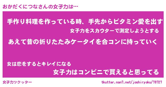 | 料理風あだ名 | 『ほっこり♪おかだくにつなの味噌そぼろ煮』 |