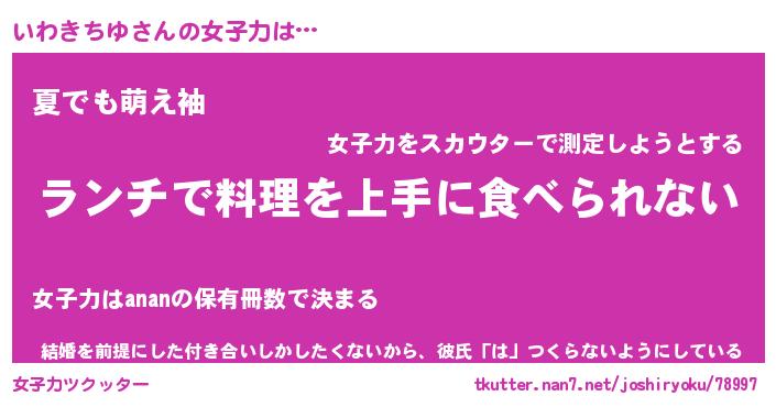 | 恥ずかしいあだ名 | 『プリティーいわきちゆ』『いわっちょ』 |