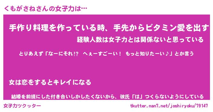 | ヘコむあだ名 | 『くももー』『つくし』『くもっ子』 |
