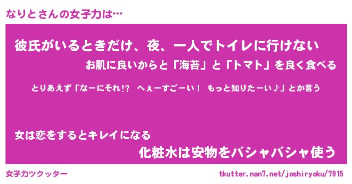 | 恥ずかしいあだ名 | 『プリティーなりと』『なりっちょ』 |