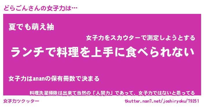 | ヘコむあだ名 | 『どらもー』『なまこ酢』『どらを』 |