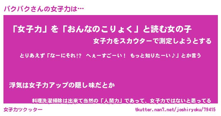 | ファンタジー風あだ名 | 『パクフェル』『エターナルパクパクー』 |