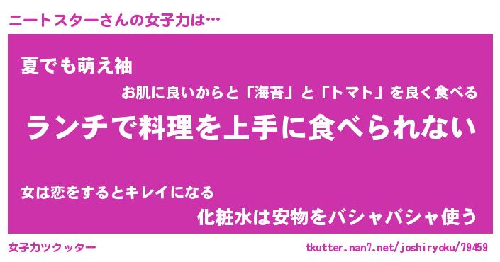 | ヒーロー風カッコイイあだ名 | 『スーパーニートスター』『魔戒騎士ニー』 |