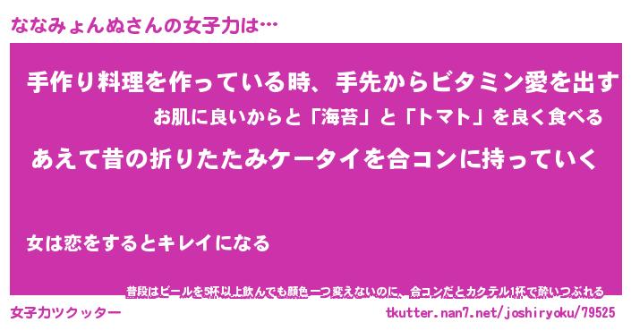 | ヘコむあだ名 | 『ななふぇ~』『つくし』『ななっぺ』 |
