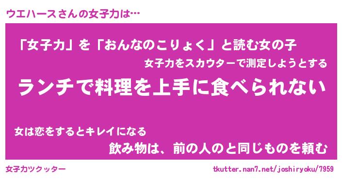 | ヘコむあだ名 | 『ウエもー』『レバニラ』『ウエっぺ』 |