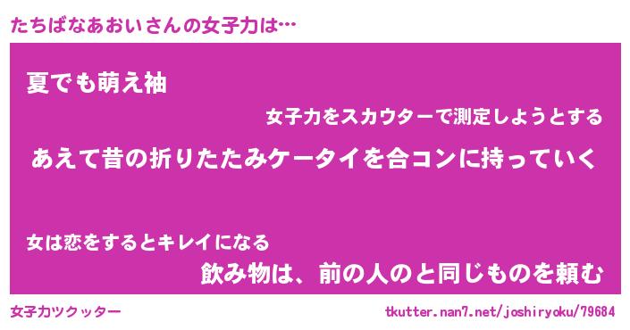 | 胡散臭い通販商品みたいなあだ名 | 『必ず成功するブレスレット…その名も「たちばなあおい」』 |