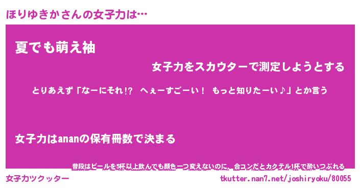 | 恥ずかしいあだ名 | 『プリティーほりゆきか』『ほりっちょ』 |