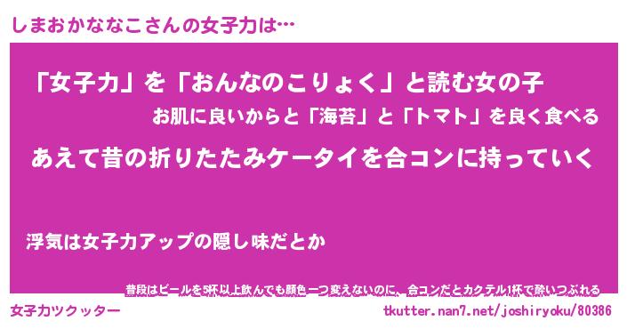 | 胡散臭い通販商品みたいなあだ名 | 『必ず成功する水晶球…その名も「しまおかななこ」』 |