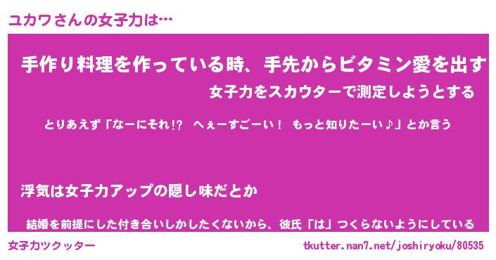 | ファンタジー風あだ名 | 『ユカフェル』『エターナルユカワー』 |