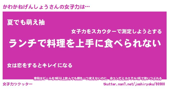 | ヘコむあだ名 | 『かわっふぃ~』『なまこ酢』 |