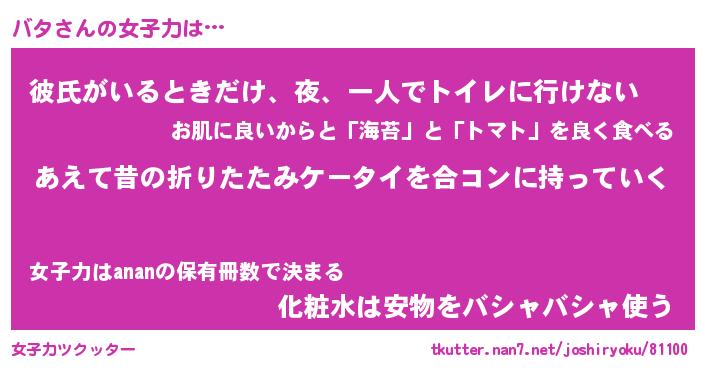 | ヘコむあだ名 | 『バタにゅー』『つくし』『バタっ子』 |