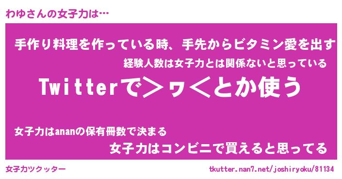 | ヘコむあだ名 | 『わゆっふぃ~』『つくし』『わゆお』 |