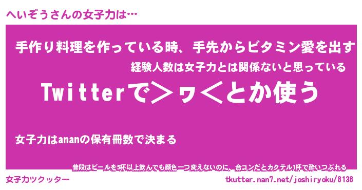 | ヘコむあだ名 | 『へいにゅー』『つくし』『へいっ子』 |