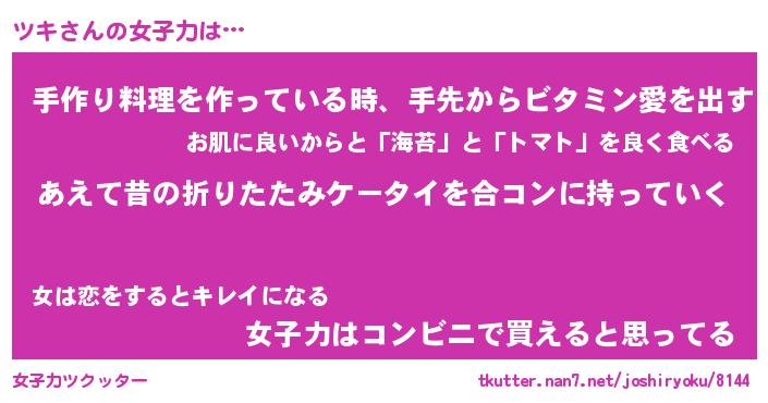| ヘコむあだ名 | 『ツキにー』『レバニラ』『ツキ(爆)』 |