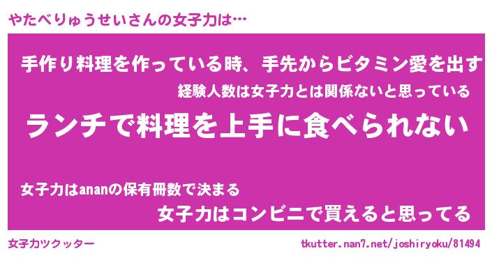 | 料理風あだ名 | 『ネギたっぷりやたべりゅうせいの南蛮漬け』 |