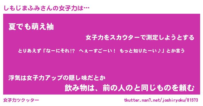| 肩書あだ名 | 『しもじまふみCEO』『しもじまふみ班長』 |