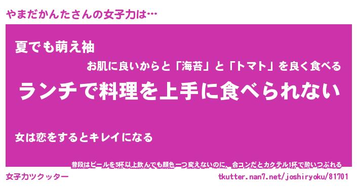 | 恥ずかしいあだ名 | 『プリティーやまだかんた』『やまっちょ』 |