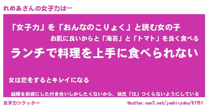 | ヒーロー風カッコイイあだ名 | 『スーパーレメア』『ウルトラれめあマン』 |