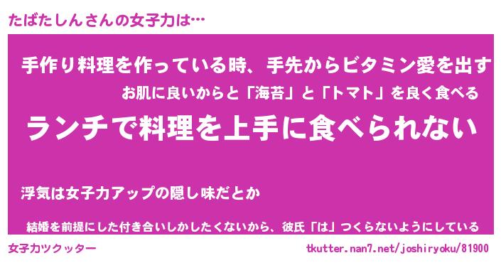 | ファンタジー風あだ名 | 『タバフェル』『エターナルタバタシンー』 |