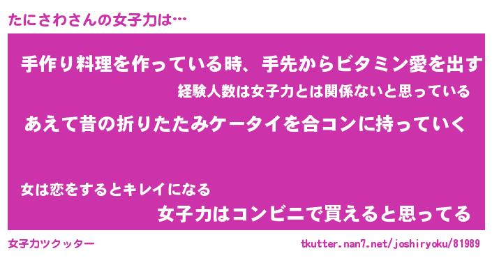 | ファンタジー風あだ名 | 『タニフェル』『エターナルタニサワー』 |