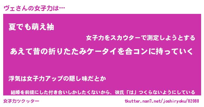 | ヘコむあだ名 | 『ヴェにゅー』『なまこ酢』 |