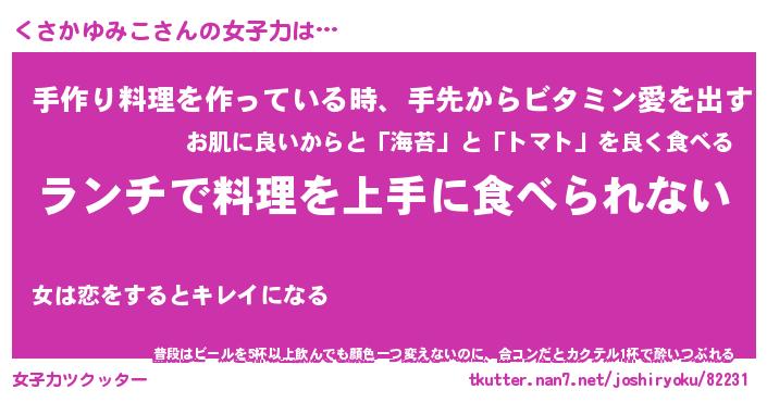 | ヒーロー風カッコイイあだ名 | 『スーパークサカユミコ』『黄金騎士クサ』 |