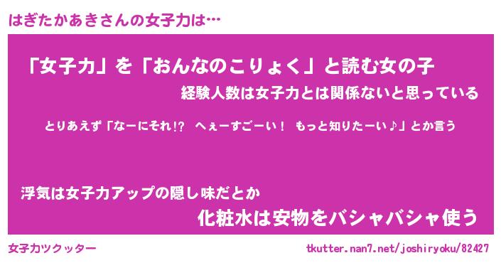 | ヘコむあだ名 | 『はぎにー』『豆乳』『はぎっ子』 |