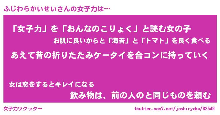 | 胡散臭い通販商品みたいなあだ名 | 『必ず成功するブレスレット…その名も「ふじわらかいせい」』 |
