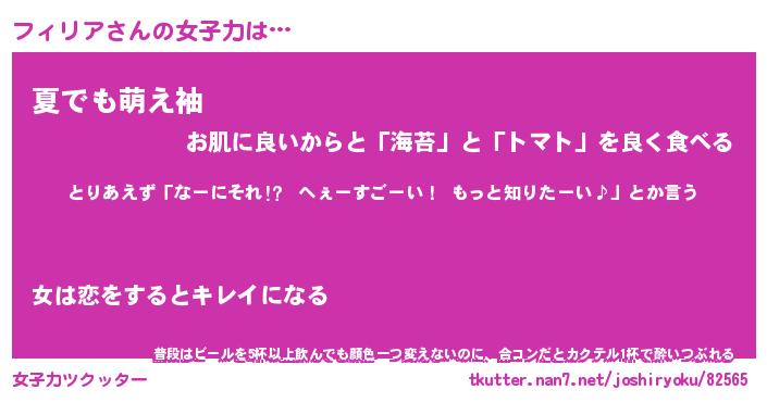 | 恥ずかしいあだ名 | 『プリティーフィリア』『フィっちょ』 |