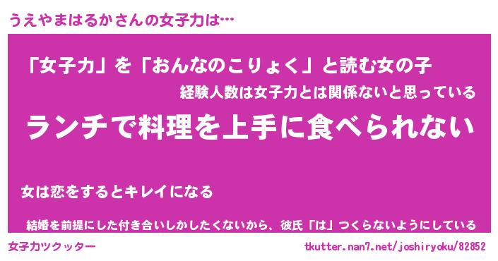 | ツイッター | うえやまはるかさんのツイッターID『fukuyoka_man』 |