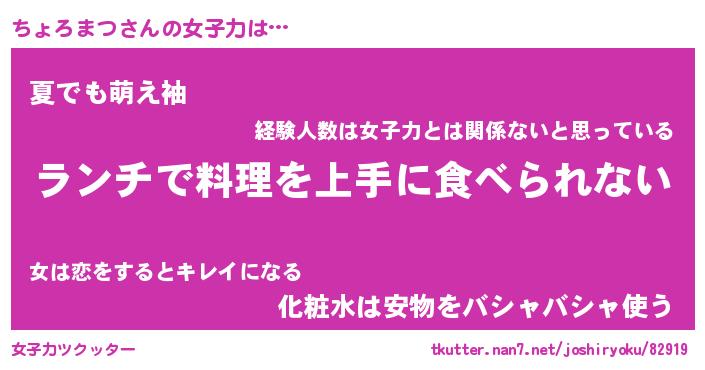 | ファンタジー風あだ名 | 『チョフェル』『エターナルチョロマツー』 |