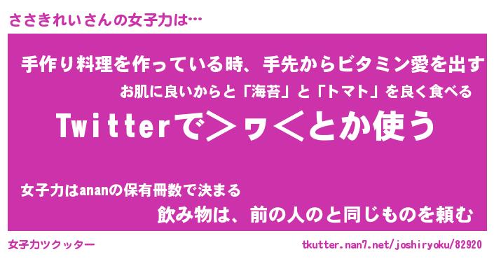 | ファンタジー風あだ名 | 『ササフェル』『エターナルササキレイー』 |