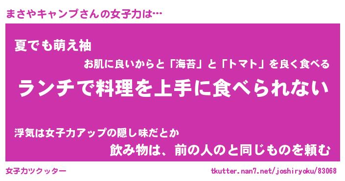 | ヘコむあだ名 | 『まさふぇ~』『なまこ酢』 |