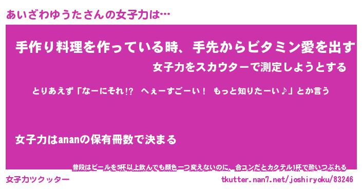 | 肩書あだ名 | 『あいざわゆうた御曹司』 |