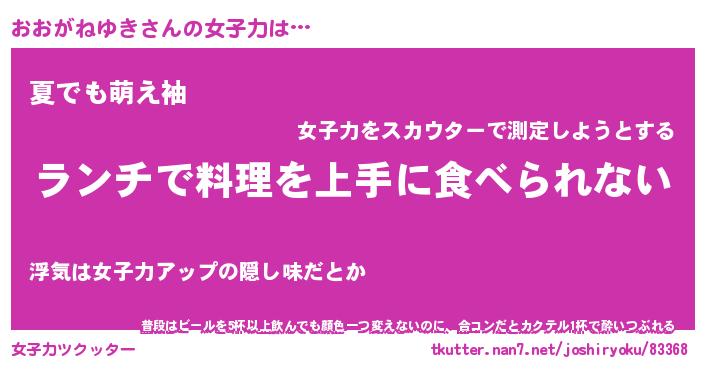 | ヘコむあだ名 | 『おおもー』『なまこ酢』 |