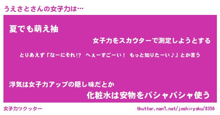 | 意味不明あだ名 | 『ペロリンうえさと』『永久保存うえさと』 |
