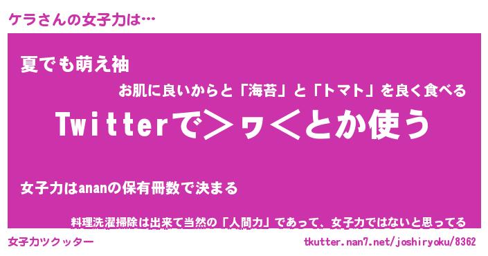 | ポケモン風あだ名 | 『ケラチュウ』『ケラダネ』『ヒケラ』 |
