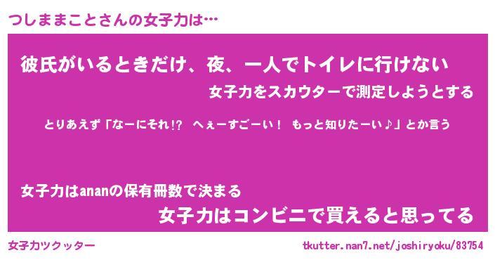 | 恥ずかしいあだ名 | 『プリティーつしままこと』『つしっちょ』 |