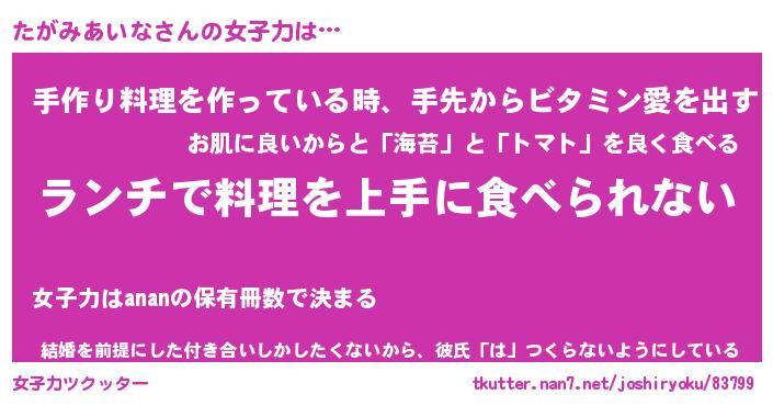 | 料理風あだ名 | 『ネギたっぷりたがみあいなの南蛮漬け』 |