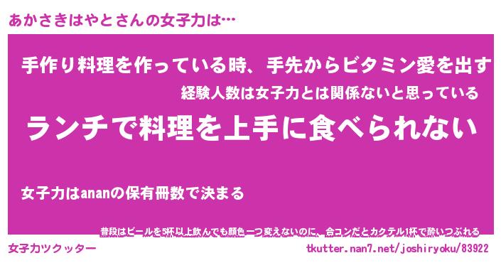 | ヘコむあだ名 | 『あかもー』『つくし』『あかっ子』 |