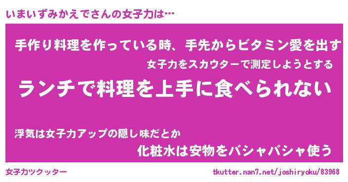 | ヘコむあだ名 | 『いまもー』『牛乳』『いまぷりん』 |