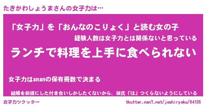 | ヘコむあだ名 | 『たきもー』『なまこ酢』『たきっぺ』 |
