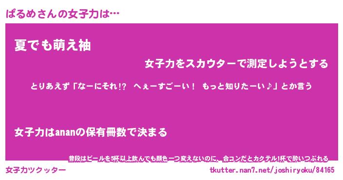 | 意味不明あだ名 | 『ペロリンばるめ』『ばるめフォーエバー』 |