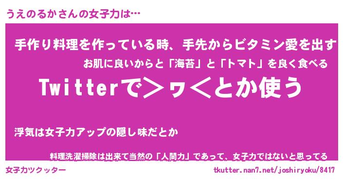 | 恥ずかしいあだ名 | 『プリティーうえのるか』『うえっちょ』 |