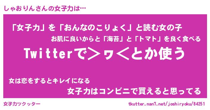 | 女子向けラノベタイトル風あだ名 | 『(仮)しゃおりんのやんごとなき事情』 |